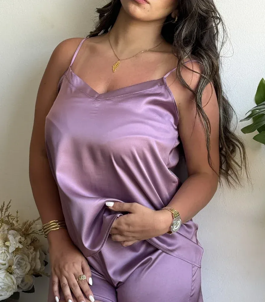 Ensemble Pyjama Bretelle et Short en Satin de Soie