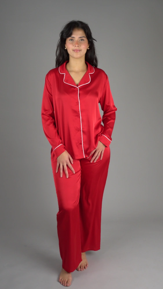 Redécouvrez le plaisir de la détente avec notre ensemble pyjama en Satin de Soie, la quintessence du confort élégant. Conçu pour celles qui ne transigent pas sur la qualité, ce pyjama long incarne le luxe intemporel pour des nuits douces et des matins raffinés.