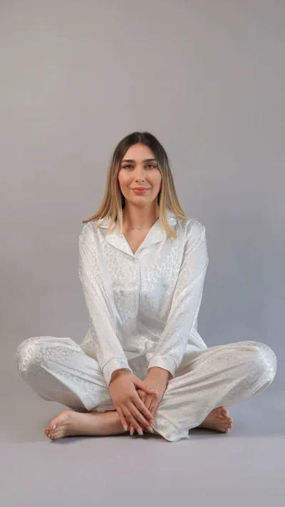 Optez pour l’élégance avec le pyjama satin jacquard blanc Édition NOOM. Sa coupe oversize raffinée, son pantalon à taille élastique bordée de contraste, et sa chemise aux finitions soignées (col, poignets, boutons recouverts) assurent un confort luxueux et une allure moderne pour des nuits stylées, confortables et élégantes, disponibles dès maintenant chez NOOM à Tunis, avec livraison rapide partout en Tunisie.